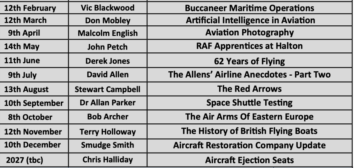 Topics include current operational staff operations, gliding over the Andies, withdrawl from Afganistan, personal perspective of one of our members on Concorde to name a few. To the right are details on future speakers and below is a sample of the variety of amazing speakers we have had in the past few years.